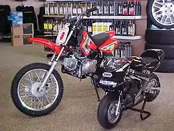 - minicross - "crossová" varianta (do lehčího terénu, například kvalitnější polní cesty, liší se především přidáním odpružení, které minibike nemá), má rozměry přibližně 110 cm x 80 cm x 50 cm.