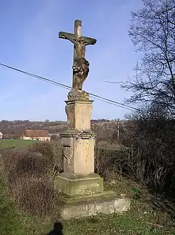 Kvalitní barokní kamenickou prací je kříž s korpusem poblíž kostela, pocházející z roku 1742. Plastika Panny Marie na jeho soklu byla zničena.