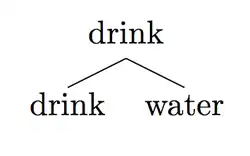 | Sloučení (drink, water) → {drink, {drink, water}} | Sloučení (drink<sub>V</sub>, water<sub>N</sub>) → {V, {drink<sub>V</sub>, water<sub>N</sub>}} |