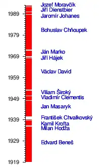 Jozef MoravčíkJiří DienstbierJaromír JohanesBohuslav ChňoupekJán MarkoJiří HájekVáclav DavidViliam ŠirokýVladimír ClementisJan MasarykFrantišek ChvalkovskýKamil KroftaMilan HodžaEdvard Beneš