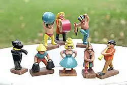 - Zvířata (krocan, tukan, velbloud, páv, medvěd a další) a lidi (černoch, Mexičan, baletka, svatba, Mikuláš a čert, sokolové a sokolky, a další)
