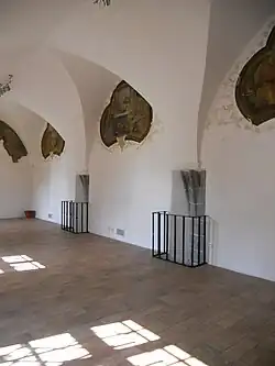 Ve druhé polovině 14. století došlo k další přestavbě, tehdy byla vybudovaná klenba, kterou síň dosud postrádala. Původně stavitelé uvažovali o vybudování složitější klenby, která měla vyrovnat kolizi os oken a tří válcových pilířů v podélné ose síně. Následně došlo ke změně plánu zaklenutí. Prostor byl zaklenut osmi poli křížových kleneb, dodnes se v této podobě dochovala západní loď. Zdi zdobily malby vytvořené okolo roku 1400 (např. v zimním refektáři se na nich zachovala postava světice). Ve stejném období byla vymalována sousední sakristie, kde byl odhalen výjezd jezdce s lukem nad barokními klenbami.