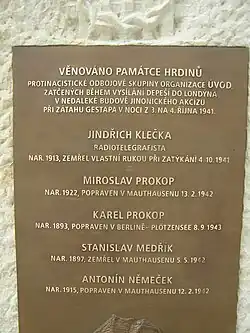 - ↑ Pamětní desky Obětem 1. a 2. světové války [online]. Spolek pro vojenská pietní místa, o.s. (vets.cz) [cit. 2014-06-02]. Dostupné online.