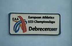 Logo mistrovství Evropy v atletice mládeže na zdi stadionu v Debrecínu