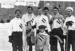 Rakousko: Hugo Nowak – Fritz Pipes, Hans Teller – Franz Pipes – Jiří Nekola, Franz Krumbholz, Oskar Schreuer.