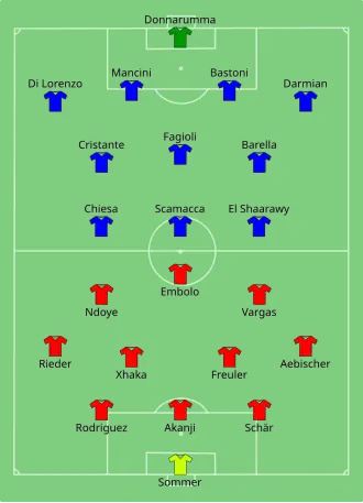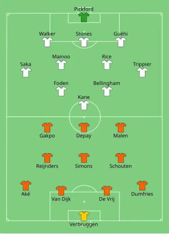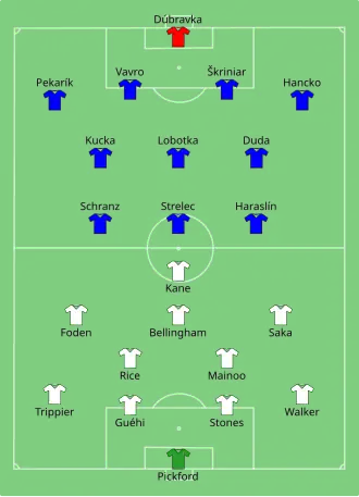 - ↑ Deniz Undav obdržel žlutou kartu na lavičce, i přes to, že do zápasu nenastoupil.