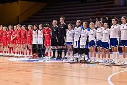 - ↑ Příznivý los MS florbalistek v Česku. Budou hrát se Švýcarskem, Lotyšskem a Dánskem. www.livesport.cz [online]. Livesport, 2025-03-20 [cit. 2025-03-21]. Dostupné online.