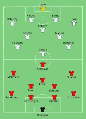 - ↑ Switzerland national football team: record v France, 11v11.com, citováno 22. 6. 2014 (anglicky)