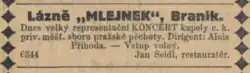 - ↑ inzerát Lázně Mlejnek. S. 8. Národní listy [online]. 1914-06-11 [cit. 2021-07-09]. S. 8. Dostupné online.