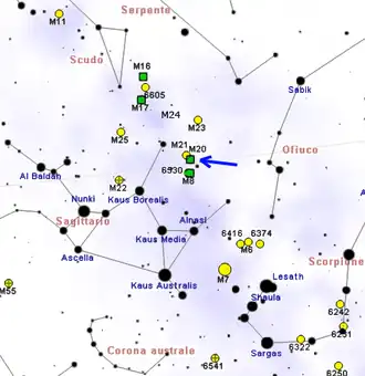 1. a b c d SIMBAD Astronomical Database: Results for M 20 [online]. [cit. 2017-08-03]. Dostupné online. (anglicky)
