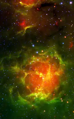 Infračervený snímek mlhoviny Trifid pořízený Spitzerovým vesmírným dalekohledem.