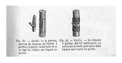 Část výhonu, tzv. roub, je oddělen střihem z jedné rostliny, aby se stala součástí jiné. Rostlina, na kterou se roub umístí se nazývá podnož. Různé druhy roubování mohou být rozděleny s ohledem k místu, kde je roub připojen k podnoži. Takto lze rozeznávat například roubování na kořeny, při vložení roubu na kořen podnože, anebo třeba roubování na korunku.[1]Roubování lze rovněž rozdělit podle techniky provedení, jako je roubování do rozštěpu, kopulace, ablaktace, roubování za kůru, roubování na kozí nožku a další.[1]
