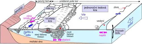 Mořský led nejen roste a taje. Během svého života je velmi dynamický. Vzhledem ke kombinovanému působení větru, proudů a kolísání teploty vzduchu podstupují pláně mořského ledu obvykle značné deformace. Mořský led je klasifikován podle toho, zda je či není schopen cestovat a v závislosti na svém věku.[3]