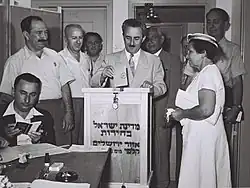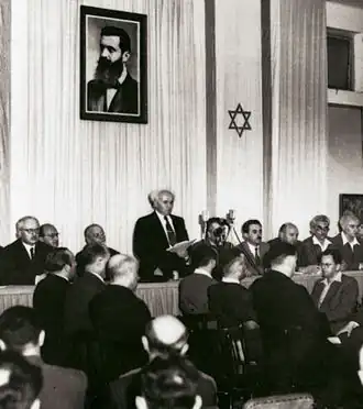 - ↑ KLEIMAN, Shelley. The State of Israel Declares Independence [online]. Ministerstvo zahraničních věcí Státu Izrael, 1999-04-27 [cit. 2010-10-09]. Dostupné online. (anglicky)