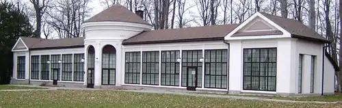 Součástí parku je i klasicistní zahradní pavilon s kruhovým půdorysem a přistavěnými bočními křídly. Kruhový pavilon s velkými půlkruhovými okny je krytý kopulovitý střechou. Postaven byl v roce 1800 jako skleník. Donedávna se využíval jako sklad nářadí na údržbu parku, pak byl přeměněn na aquacentrum patřící hotelu. V současnosti je opět nevyužívaný.
