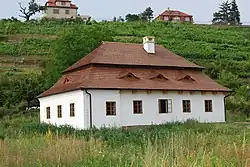 Součástí historicky cenného areálu modřanské vinice je i památkově chráněný[1] viniční dům postavený v roce 1801. Částečně roubená venkovská usedlost byla využívána při sklizni hroznů, přípravě vína a jeho uskladnění. Jedná se o unikátní ukázku domku z období klasicismu s pětiosým průčelím, trámovým stropem, střechou ze štípaného šindele, půdními průzory a mansardovou střechou. Původně se zde nacházela také černá kuchyně s dýmníkem, průlezným komínem a chlebovou pecí.