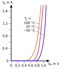 Proudově-napěťovou charakteristickou křivku křemíkové polovodičové diody v propustném směru (závislost proudu diodou na kladném napětí ) lze v podstatě popsat Shocklyho rovnicí.