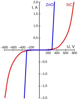 kde a . Varistory z oxidu zinečnatého mají hodnotu typicky v rozsahu 30…70. Diferenciální odpor vyplývá ze vzorců