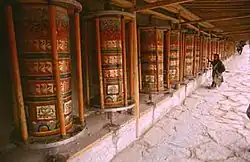 - ↑ a b c RINPOCHE, Kyabje Lama Zopa, DOELTER, Jindati, Briege WALLBRIDGE a Ailsa CAMERON, ed. The Benefits of Prayer Wheels. Www.lamayeshe.com [online]. [cit. 2020-05-21]. Dostupné z: https://www.lamayeshe.com/article/benefits-prayer-wheels