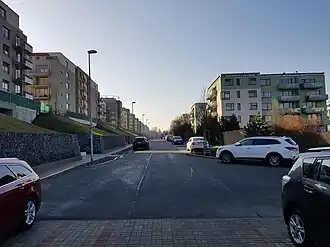 Po severní straně ulice je v západním úseku zahrádkářská kolonie, ve východním úseku jsou čtyři pětipodlažní obytné domy s balkony, lodžiemi nebo terasami developerského projektu Zahrady nad Rokytkou I,[5] který byl dokončen v létě 2008.[6][7] Před domy jsou podélná parkovací stání. Na jižní straně je svah, ve kterém jsou vjezdy do garáží a vchody do obytných domů developerského projektu Zahrady nad Rokytkou II,[5] který byl dokončen v letech 2015 (domy s označením 6 a 7 na východní straně) a 2016.[8] Autorem projektu této etapy je pražský atelier Loxia. V sedmi šestipodlažních domech je 282 bytů s balkony, předzahrádkami a prostornými terasami.[6] Byty mají dispozici od 1+kk až 4+kk.[8] Ulice je lemována stromy, chodník je ze zámkové dlažby. Na východním konci ulice je parková úprava. Podél jižní strany ulice nad svahem vede stezka pro cyklisty A26.