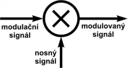 - nosný signál – signál, který modulujeme modulačním signálem