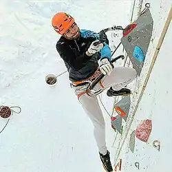 První Íránec který získal medaili na mistrovství světa a světovém poháru v ledolezení.