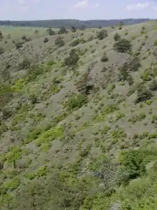 Teplomilné doubravy, které byly pravděpodobnou přirozenou vegetací, se v dnešní době nacházejí pouze na jižních svazích v nižších polohách. V daném pokryvu navíc převažuje invazní borovice. Na náhorní plošině je tato pravděpodobná lesní vegetace vytlačena druhotnými porosty, především bylinami. I přes to, že novější rostliny nahrazují původní, velká část z nich jsou významné a chráněné.