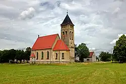 - Památník obětem první světové války, který se nachází před vchodem do evangelického kostela, byl postaven v roce 1924.
