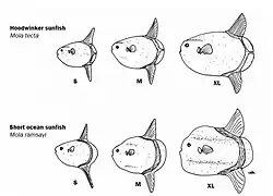 - ↑ YOSHITA, Yukiko; YAMANOUE, Yusuke; SAGARA, Kotaro. Phylogenetic relationship of two Mola sunfishes (Tetraodontiformes: Molidae) occurring around the coast of Japan, with notes on their geographical distribution and morphological characteristics. Ichthyological Research. 2009-07-01, roč. 56, čís. 3, s. 232–244. Dostupné online [cit. 2023-06-07]. ISSN 1616-3915. doi:10.1007/s10228-008-0089-3. (anglicky)