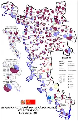 Moldavská ASSR měla půl milionu obyvatel; většinu však tvořili Ukrajinci (46 % v roce 1936), následovaní Moldavany (32 %), Rusy (10 %) a Židy (8 %). Republika byla zemědělského a venkovského charakteru s poměrně rozvinutou železniční sítí.