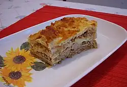 - Moussaka, jemný koláč z mletého jehněčího masa, lilku, rajčat, cibule, cukety, brambor a zelí