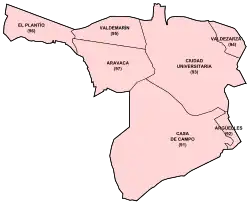 | Administrativní dělení | Casa de Campo (91) Argüelles (92) Ciudad Universitaria (93) Valdezarza (94) Valdemarín (95) El Plantío (96) Aravaca (97) |