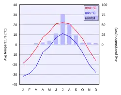 Poloha Mongolska ve středoasijské vysočině mu propůjčuje jedno z nejextrémnějších podnebí mezi kontinentálními a suchými podnebími na světě. Vzhledem k suchému, výrazně kontinentálnímu podnebí dochází během roku k velkým teplotním výkyvům: v zimě jsou průměrné denní teploty -25 °C, v létě +20 °C, což znamená, že výkyvy jsou dvakrát až třikrát větší než např. v západní Evropě. Průměrný roční úhrn srážek dosahuje 200 až 220 mm a klesá od více než 400 mm na severu země po méně než 100 mm na jihu pouště Gobi. V průběhu roku spadne 80 až 90 % srážek od května do září. Neobvykle vysoké jsou také teplotní rozdíly mezi dnem a nocí, které dosahují až 32 °C. Absolutní teplotní amplituda mezi létem a zimou dosahuje až 100 K.