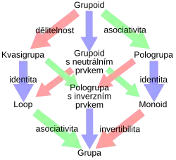 | Asociativita | Neutrální prvek | Inverzní prvek | Komutativita | |