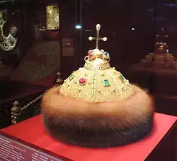 Základem koruny je byzantská zlatnická práce bohatě zdobená filigránem.[1] Vrcholová část s křížkem, osazení drahokamů a kožešinový lem byly doplněny později.[1]