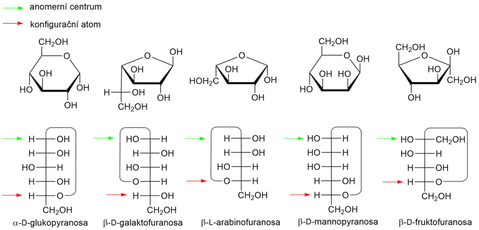 Příklady monosacharidů a určení jejich anomerní konfigurace