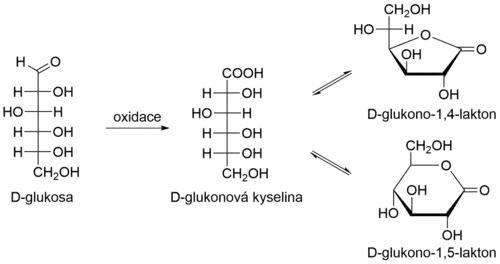 Oxidace D-glukosy na D-glukonovou kyselinu a její laktonizace