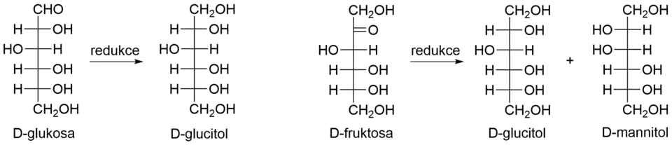 Příklady redukce aldos a ketos na příslušné cukerné alkoholy
