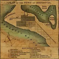 Město založili v roce 1822 osvobození černí otroci z USA.[3] Jejich usídlování na území budoucí Libérie zahájila Americká kolonizační společnost[4] v roce 1816. Město se dělilo na parcely o ploše čtvrt akru, které se losem přidělovaly novým přistěhovalcům.[1] V roce 1835 vznikla městská rada, první svého typu na celém západě Afriky.[1] Město získalo vlastní územní plán s vypracovanou uliční sítí a první přístav, který byl umístěn u ústí řeky Mesurado. V roce 1845 se v Monrovii konal sjezd Americké koloniální společnosti, kde byl schválen projekt, jež se o dva roky později přetransformoval do ústavy nezávislé a suverénní Libérijské republiky.