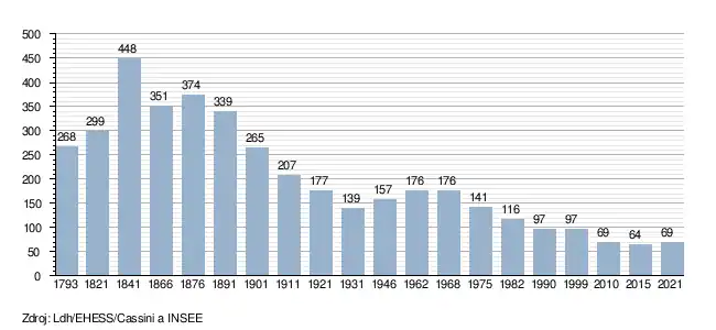 Od 60. let 20. století v obci postupně klesal počet obyvatel, průměrná hustota zalidnění v roce 2021 byla 8,4 obyvatel na km².