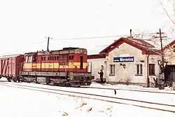 ![]() Osobní vlak z Hradce nad Moravicí do Opavy před vjezdovým návěstidlem odbočky Moravice v roce 2000 | |