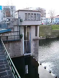 Mezi věže byly osazeny modernější válcové uzávěry, jejichž obsluha byla umístěna do těchto věží přístupných po schodech z mostovky. Vznikla tak dvě pole jezu (široká 18 a 20 metrů) nově hrazená tabulovými uzávěry systému Stoney.[10] Obdobné architektonické řešení modernistických stavidlových věží bylo uplatněno rovněž při výstavbě přepadových výpustí na hrázích vodních nádrží Kružberk a Těrlicko na severní Moravě, jejichž stavba probíhala ve stejné době.[13]