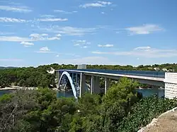 U ústí zálivu do moře se nachází 140 m dlouhý Morinjský most, který je součástí silnice D8.