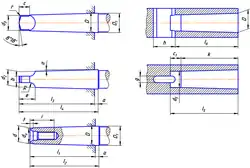 Existuje více normovaných velikostí, přičemž určujícím rozměrem je průměr v nejširším místě kuželu daného nástroje mm: