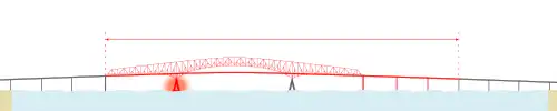 Z technického hlediska byl hlavní most spojitým příhradovým obloukovým mostem o třech polích, do kterého byly integrovány prvky obloukového mostu, jako je zavěšená vozovka. Od roku 2024 měl třetí nejdelší rozpětí ze všech ocelových příhradových spojitých obloukových mostů na světě.[3]