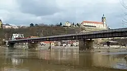 - ↑ KLUČKOVIČ, Miroslav; SEMÍN, Petr. Před 130 lety byl postaven první most přes Labe pod Mělníkem. Mělnická radnice. Město Mělník, 2018-11-01, roč. 27, čís. 11, s. 5. Registrace MK ČR E 10706. Dostupné online [cit. 2021-02-26].