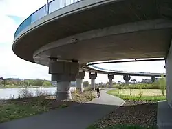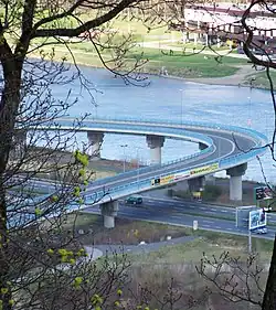 Šířka mostu se mění od 11,05 m v rovném úseku až k 15,75 m v místě nejostřejšího oblouku, volná šířka mezi svodidly od 8,00 m až k 12,70 m. Most má jeden jízdní pruh v každém směru s pravostranným chodníkem šířky 2,25 m.