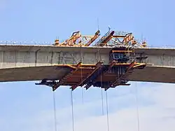 Pilíře byly vybetonovány v průběhu jara[4], léta a podzimu roku 2017 a následně budou stavební práce pokračovat s dokončením vrchní části stavby. Most navrhla společnost China Road and Bridge Corporation. Na stavbě pracovali i dělníci z Čínské lidové republiky.[5] Na staveništi pracovalo okolo 150 lidí a betonování sloupů se odvíjelo rychlostí 1 m denně. Stavební práce probíhaly jak ve dne, tak i v noci. Očekává se, že výsledné náklady na výstavbu mostu dosáhnou částky 200 milionů USD.[6] Na most bylo vynaloženo 74,5 milionů eur.[7]