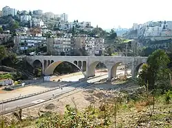 Spojuje dolní centrum města Haifa se čtvrtí al-Chalisa. Vádí Nachal Giborim vytváří výrazný terénní zářez, který ve východozápadním směru rozděloval Haifu. Most byl postaven roku 1927 za starosty Hasana Bej Šukriho. V té době se v údolí Nachal Giborim a ve vyvýšených lokalitách při jeho horním toku těžil kámen. K zdejším lomům tak pod mostem vedla provizorní železniční vlečka. Později byla zrušena spolu s lomy. Most byl postaven z betonu a představoval z inženýrského hlediska jednu z nejmodernějších staveb tohoto typu v tehdejší mandátní Palestině. Jeho oblouk měl rozpětí 30 metrů.