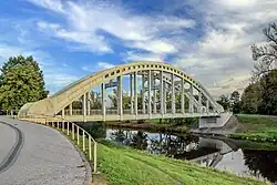 Železobetonový obloukový silniční most s novobarokními prvky je unikátní technické řešení. Na dvou podélných obloucích je zavěšena mostovka. Ke konstrukci bylo použito odlehčeného železobetonového Vierendeelova nosníku v horním oblouku. Most je příčně vyztužen třemi trojicemi vodorovných prutů nad sebou, proložených svislým středním prutem.